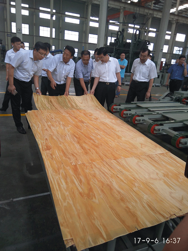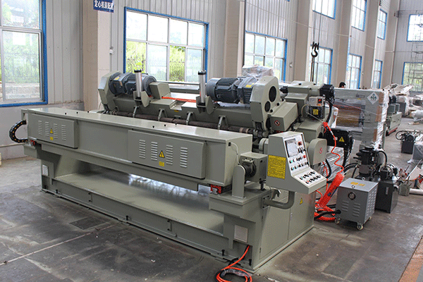 公司新研制的无卡轴旋切机试制成功